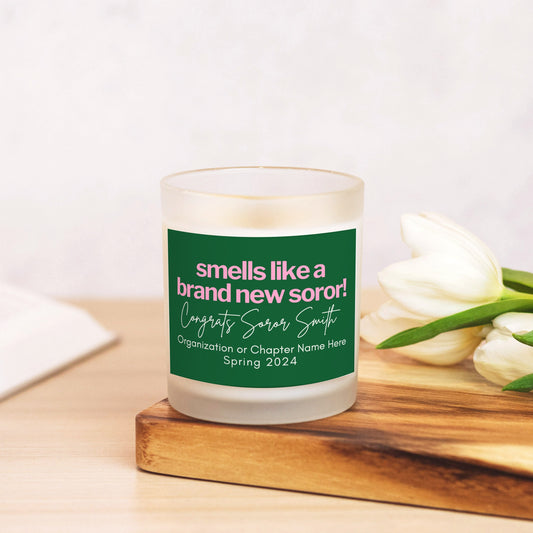Personalized Pink and Green New Soror Candle