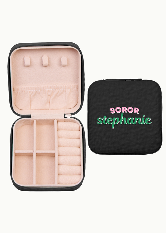 Pink and Green Custom Soror Travel Jewelry Case