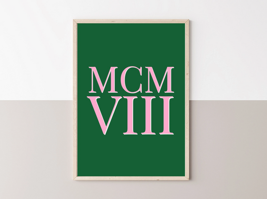 Pink and Green 1908 Roman Numerals - Unframed Printed Poster